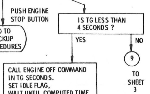 ![]() Cette partie de l'organigramme du programme 32 est plutôt tordue. Il y a un traitement qui est appelé depuis le feuillet 2 à travers le point 2 (cerclé de rouge); lorsque le feuillet 2 appelle cette partie du feuillet 1, le drapeau TERMINATE est déjà positionné. Après le traitement, qui remet à zéro le drapeau UPDATE, dans le cas où il n'y a pas d'alarme (ce qui est le cas normal), la branche gauche est exécutée, dans laquelle le drapeau UPDATE n'est pas positionné parce que le drapeau TERMINATE est couramment positionné, et le feuillet 2 est à nouveau appelé; cette fois le feuillet 2 provoque une sortie de programme parce que le drapeau TERMINATE est positionné...avec le drapeau UPDATE couramment à zéro! |