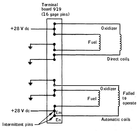 ![]() An engine of the RCS produced low and erratic thrust because of a continuity problem in one of the coils of the engine valve. |