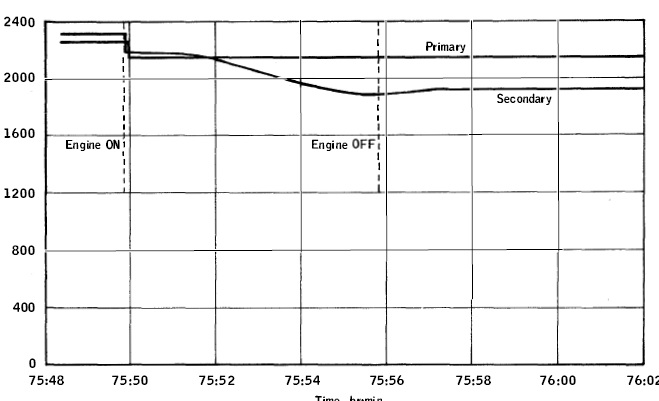 ![]() There was a decay of pressure of the gaseous nitrogen in the redundant service propulsion engine actuation system. The problem would come from a leakage in a solenoid control valve, and the leakage would come from contamination. |