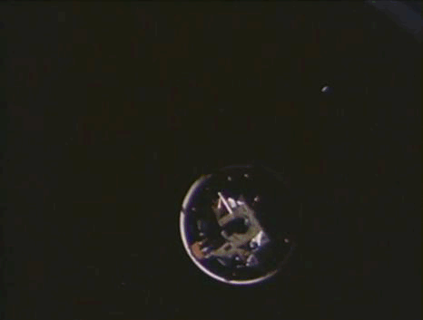 Le fait que le LM commence de grossir alors qu'il est encore en bas de l'image, tandis que son centre est près du coin haut droit de l'image à la fin de l'arrimage, signifie que le CM a commencé de s'avancer vers le LM avant d'être aligné avec ce dernier.