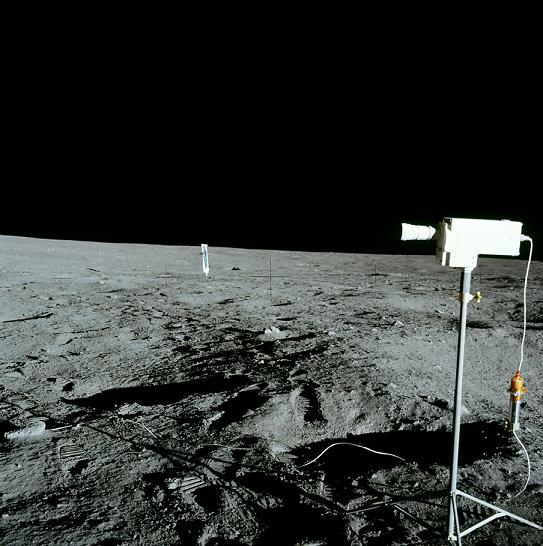![]() And, for the antenna of the ALSEP, it was the same thing; as it was communicating with the earth to send its measures, it also had to be oriented toward the earth with a quite good precision. |