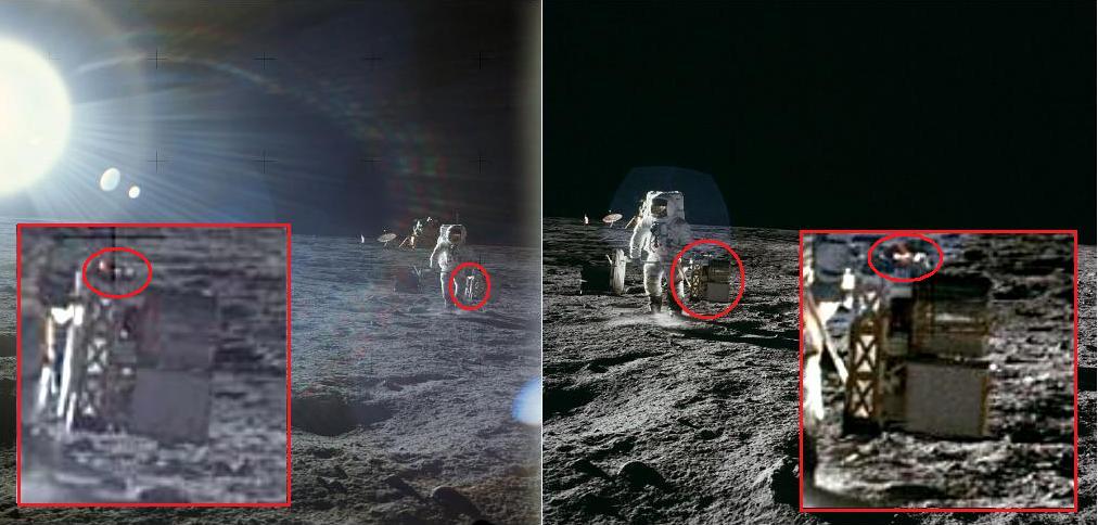 ![]() On photos AS12-46-6806 and AS12-46-6807 there is an alien thing on top of the device the astronaut is carrying which is different; it looks weird, like a cartoon character, but what's sure is that it changes from one photo to the other one. |