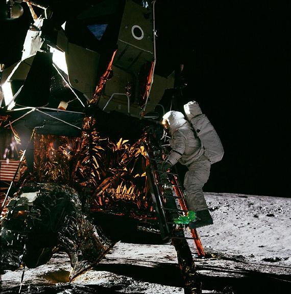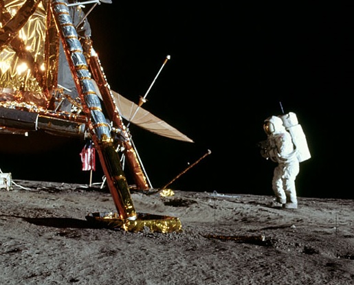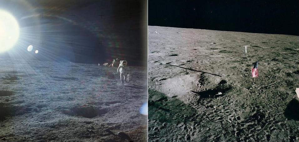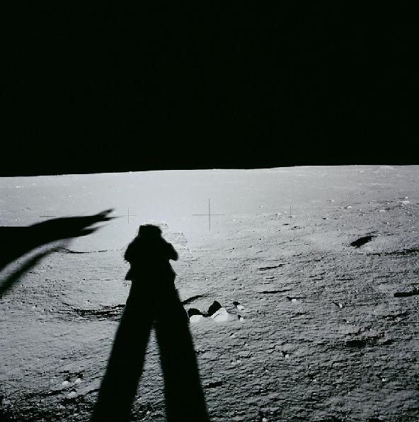 ![]() This photo is taken upside down. Knowing that the astronauts had their camera strapped on their chests, in order to take this photo, the astronaut would have had to walk on his hands; in this position, triggering the camera would have been rather difficult! |