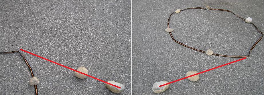 To show what's wrong with these two photos, I'm going to show you a real demonstration. ![]() On this first double view, I have remained at the same place (I have put stones around my shadow to show it doesn't move), and I have turned my camera in the two directions. I have stretched a ribbon supposed to represent the foreground. The wall in the back will represent the background. ![]() On this double view we can see that the foreground (yellow line) and the background (red line) rotate the same; the foreground does not rotate relatively to the background. My shadow has been pushed on the left because I have turned my camera on the right. When you turn your camera around the vertical axis, the foreground does not turn relatively to the background, and both show almost no rotation. When you bend your camera, all things rotate the same way (i.e. the foreground rotates the same way as the background, and therefore does not rotate relatively to the background). ![]() On this new double view, I have moved on the left between the first and the second photo. ![]() And this time we can see that the foreground shows a rotation relatively to the background. ![]() If, from this second position, I turn my camera, the foreground and the background both rotate the same way. ![]() If we compare the photo at the first position of the photographer with the photo at the second position of the photographer with the camera rotated, the foreground still shows a rotation relatively to the background, but this only comes from the move of the photographer, and not from the rotation of the camera. ![]() So the conclusion of this demonstration is that the foreground can only rotate relatively to the background if the photographer moves and not if he turns his camera. ![]() So now we can better see what's wrong with these two photos: We can see the same rocks near the photographer's shadow on the two photos; conclusion: the photographer has not moved between the two photos. We can also see that the foreground has made a little (clockwise) rotation relatively to the background; conclusion: the photographer has moved between the two photos (because it can only happen if he moves and not if he turns his camera). So this demonstration of the fakers shows that the photographer both moves and doesn't move! |