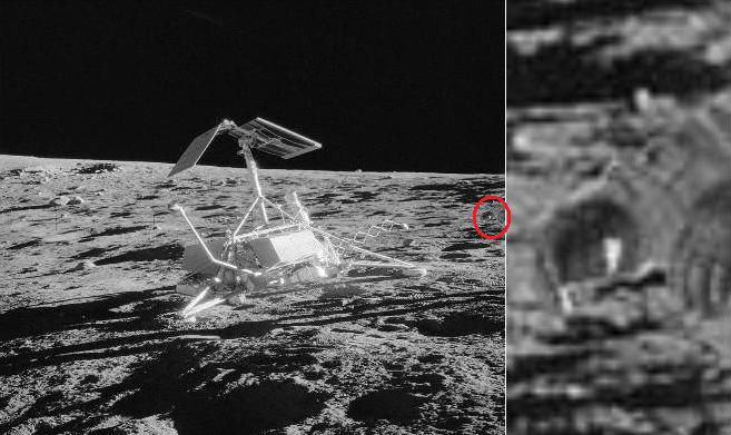 ![]() On this photo (AS12-46-6725), there is a strange alien's head lying on the ground. |
