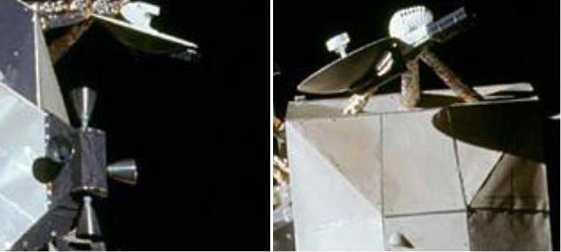 ![]() On this photo (AS12-46-6779), the high gain antenna does not make an angle of a little more than a quarter of a turn on the left of shadows. It would rather look toward the sun. |
