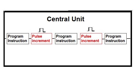 ![]() And the count of pulses of the electronic counter can be read by the processor with an IO read operation. |