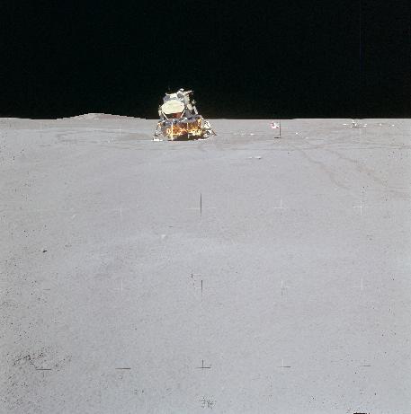 ![]() On the first photo, he is positioned such that he sees the lunar module frontally. |