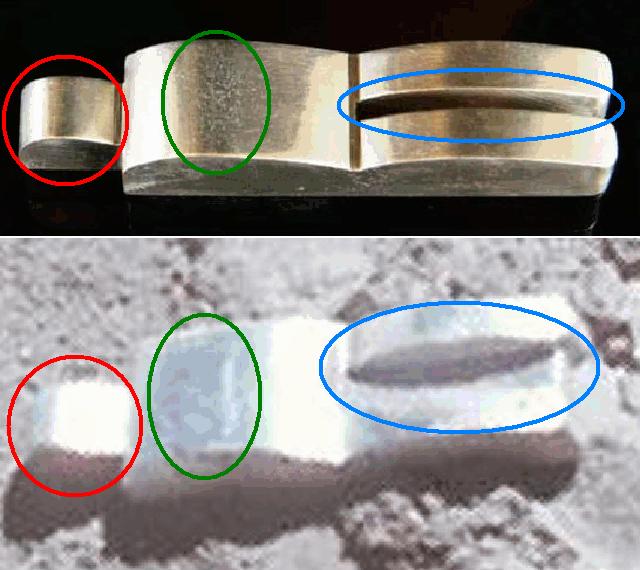 ![]() But, on the second photo with the LM, we can see that the little mount on the left is not visible; we can see a small accident in the background but it is too small, it does not correspond with the mount on the left. |