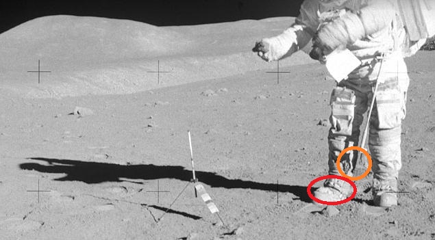 ![]() On the photo AS15-82-11155, the footprint we see looks very strange; it is not at all shaped like a normal footprint; its proportions are obviously incorrect. |