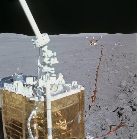 ![]() On the photo AS15-92-12421, we can see that the "Suprathermal ion detector" (as the documentation calls it) is quite far from the ALSEP, consistently farther than the other devices attached to the ALSEP; yet this device is, like all the other devices, also attached to the ALSEP by a ribbon running on the ground; that means it would need a very long ribbon to attach it to the ALSEP; but why put it so far from the ALSEP? It is not necessary to put it so far, it obliges to have a very long ribbon, and a too long ribbon dissipates more energy than a shorter one (and stands more chance to be cut by micro-meteorites, if such meteorites really strike the moon)! |
