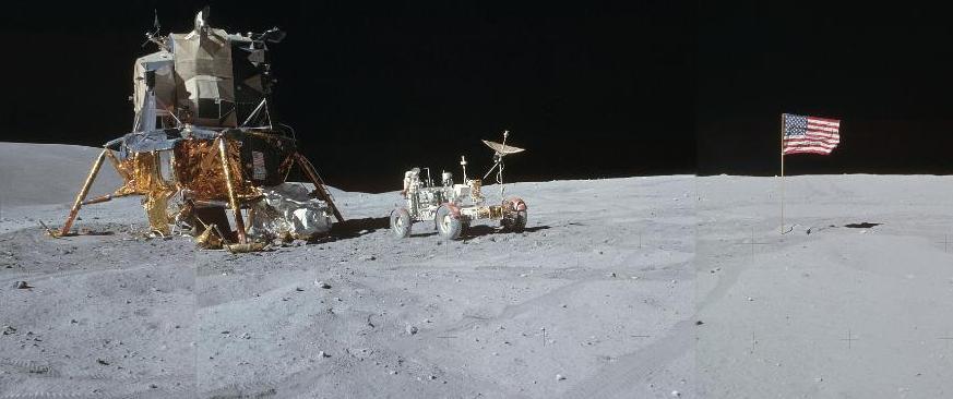 ![]() I have made this panorama with the photos AS16-107-17435, AS16-107-17437 and AS16-107-17439 of Apollo 16. ![]() When we compare this panorama with the photo of the astronaut jumping, the LM does not seem to be at the same distance at all. Now, you are going to say: Prove it. It may not be so easy to prove, but there is something easier to prove. ![]() On the photo AS16-117-18815 we can see the LM and the flag in the distance under the same perspective as my panorama, just in opposite. ![]() I have extracted an equivalent part, and I have inverted it horizontally to have the flag on the same side relatively to the LM. ![]() If we compare the panorama I have made with the part I have extracted from the photo (and inverted horizontally), we can see that the size of the flag relatively to the LM is very different on the two views. Would the flag have shrunk along the mission. If it continues to shrink, I'm afraid it will completely disappear! And that's now all, notice that, although the flag is on the right of the lunar module on the two views, the lunar module is oriented differently! |