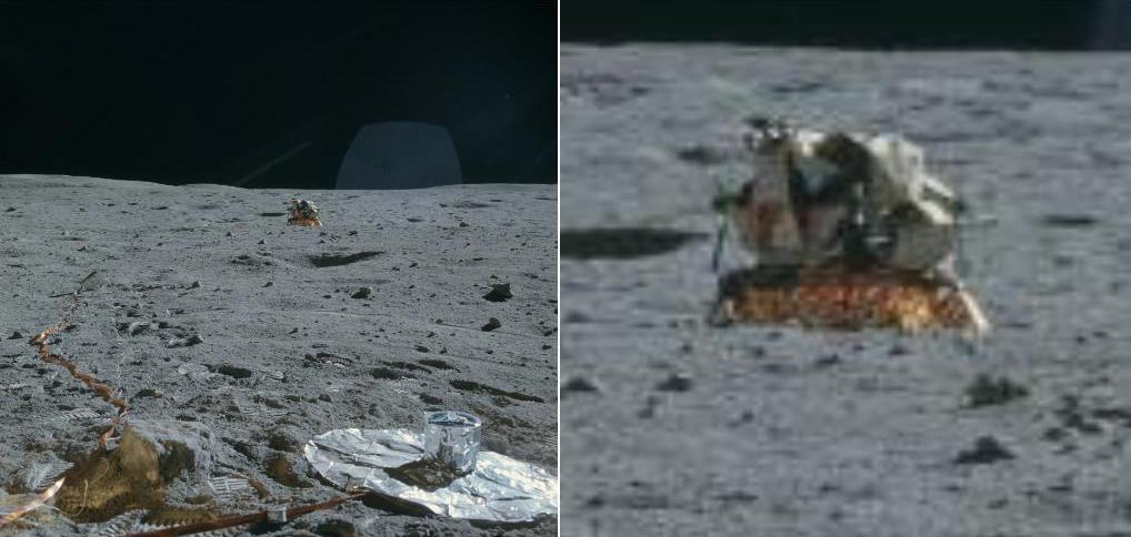 ![]() On AS16-117-18816 (right), the lem we see in the distance has an element (I have circled in red) which is different from the same element on AS16-116-18579 (left). |