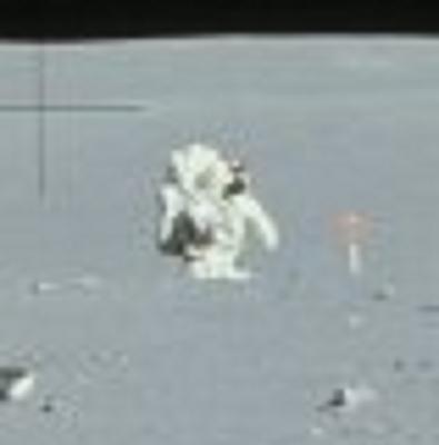 ![]() This is a part of photo AS16-106-17340. First anomaly: On the photo, the upper end of the brush the astronaut is holding is at some distance from his head...but on the shadow, it's quite close to it. Second anomaly: Where is the shadow of the astronaut's backpack??? |