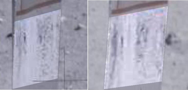 ![]() On photos AS16-109-17797 and AS16-109-17795, we can see two views of an astronaut with his rover behind him. On one photo the astronaut looks bigger than on the other photo. If we make an animation with these two photos, that makes a comical effect. One might think that if the astronaut and the rover were looking smaller on the second photo, it's simply because they are taken from farther away, and so the apparent anomaly would be normal. But is it really the case? Are the astronaut and the rover of the second photo compliant with the ones of the first photo but taken from farther away? We are going to see that! ![]() Here we have a little table taken at two different distances. ![]() If I magnify the second photo, I can obtain a table of the same sizes as the one of the first photo. If the orientation of the table on the two photos was the same, I could perfectly superpose the tables of the two photos after I have resized the one of the second photo. ![]() If I magnify the astronaut of the second photo, he doesn't look like the one of the first photo; I couldn't superpose the two, the one of the second photo is thinner, he has a ratio Width/Height different. ![]() And if the rover was really smaller because taken from farther away, it would be higher on the second photo, closer to the horizon line, like this bike taken at two different distances. On the Apollo photos, the two rovers are at the same height on the two photos, the same distance from the horizon line. The situation would be normal if we were seeing the smaller rover of the second photo higher on the photo, closer to the horizon line, like in this animation in which I corrected the rover of the second photo to put it higher on the photo, closer to the horizon line. So this animation isn't just amusing, it's also abnormal. |
