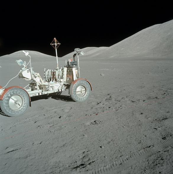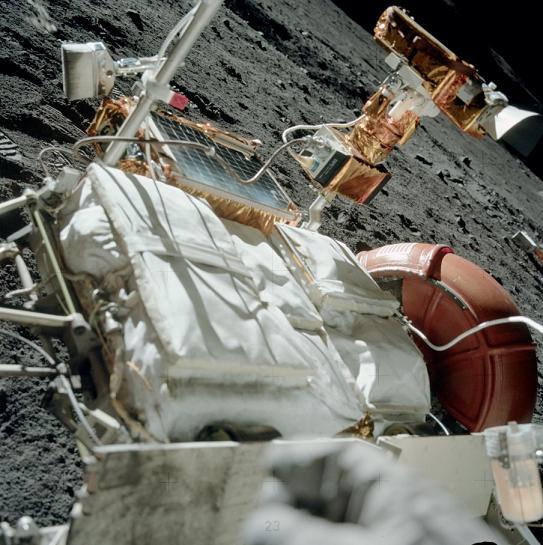 ![]() On photo AS17-134-20389, how did the astronaut manage to take that photo of the rover under this impossible angle? Note: You can see his glove on the lower edge of the photo. |