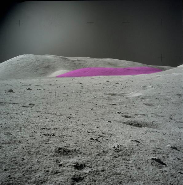 ![]() On photo AS17-134-20508, we find the LEM before a hill, and on photo AS17-137-21019, we find the same hill (recognizable by its artifacts), but without the LEM before. ![]() And don't think that the LEM might just be out of view on the second photo; I have made a panoramic view with two consecutive photos (AS17-137-21019 and AS17-137-21020), and no LEM in view. ![]() Now, you are going to tell me: Yes, it's probably the same hill, but there is a difference though; there is a little hill (I have colored in pink) before, which is not on the other photo, and the big hill behind is a little smaller than on the other photo; the lem could be hidden by this little hill. It's a possibility. ![]() But you can see that there is a hill on the extreme right of which the foot (I have circled in red) starts before the little hill which is not present on the photo with the lem. So, logically, we should not see this hill on the photo with the lem, since we don't see on it the little hill which is after. ![]() And yet, we see this hill on the photo with the lem (I have circled the foot of this hill in red). |