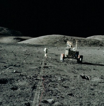 ![]() On photo AS17-133-20328, we see the shadows of the two astronauts in such a way that it is obvious that none of them could take the photo. The shadow of one of them is outright delirious, funny. |