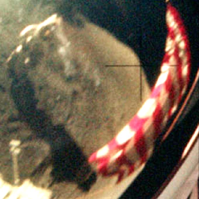![]() On photos AS17-137-20900 and AS17-137-20901, we see two views of a rock. But what's interesting is what is on the right side of this rock. On the first photo we see appear an astronaut's head, with something funny over his helmet, and on the second photo, this astronaut disappears. ![]() On this close-up, you can better see the strange head of the astronaut, with the strange thing he has over his helmet, which looks like an university doctor's toque. What we see in the visor of the astronaut is also interesting: 1) We can see the reflection of the photographer on the center of the visor; yet, as the astronaut's head is on the extreme right of the photo, the reflection of the photographer should appear on the left of the visor, and not its center. 2) See how the shadows are oriented on the photo: We should not see the reflection of the shadow of the big rock on the visor. ![]() And there is a very weird thing just under the astronaut's bust on the first photo. If we play an animation with these two photos, it makes a funny effect. |