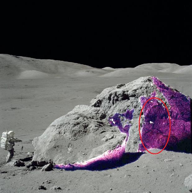 ![]() On this pair of photos in Apollo 17 (AS17-142-21825 and AS17--142-21826), the photographer takes two views of a big rock with other rocks behind and the rover in the background. On one photo the big rock is on the extreme left, and on the other one it is on the extreme right because apparently he turned his camera. ![]() On this double view, I take two photos of a little table with my rucksack behind, and my bike still behind. The table represents the big rock in the Apollo photo, the rucksack a rock which is behind the big rock, and the bike the rover. On the first view, the table is on the left, and on the second view it's on the right (like the big rock on the Apollo photo). Between the two views, I have moved on the left; this is visible because my rucksack and my bike have moved on the left relatively to the table (my bike more because it is farther). Consequently the table shows an optical counterclockwise rotation. ![]() On the pair of the Apollo photos, a rock (I have circled in orange) and the rover (circled in yellow) have moved on the left relatively to the big rock, like in my example. Consequently the big rock should show an optical counterclockwise rotation in reaction to the move of the photographer, and at first view it does. So where is the problem? ![]() The problem is that I can find two artifacts on the big rock that, when I draw a line between them, this line doesn't show the counterclockwise rotation it should, and even a slight clockwise rotation. Another anomaly is that the bit of shadow I have circled in red drastically changes between the two photos. ![]() I have added some luminosity on this big rock on the two views, and we see very strange things appear on it...and they are not the same on the two views, there are differences. |