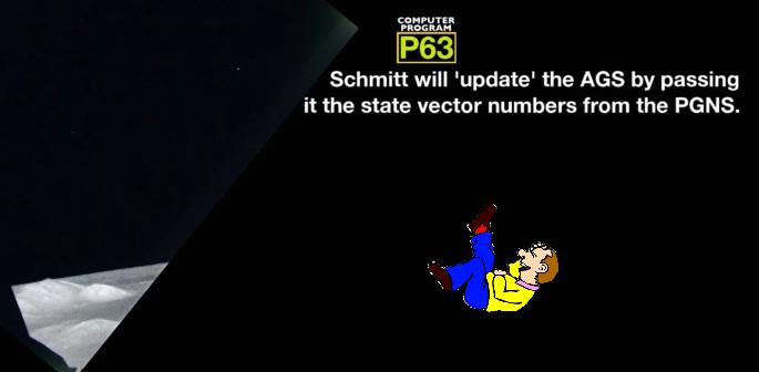 ![]() Ils disent: "Schmitt va mettre à jour l'AGS en lui passant les nombres des vecteurs d'état du PGNS". L'AGS n'a normalement pas besoin d'être mis jour avec les vecteurs d'état du PGNS car il utilise les mêmes équations et données, et obtient donc les mêmes vecteurs d'état. Maintenant, mettre à jour l'AGS à partir du PGNS aurait pu avoir un sens si les vecteurs d'état avaient pu être instantanément mis à jour à partir de ceux du PGNS. En effet, pour faire la mise à jour, Schmitt dit d'abord lire les 6 valeurs des vecteurs d'état sur le PGNS, et ensuite les taper sur l'AGS, mais ceci prend du temps, et, d'ici que Schmitt ait fini de rentrer les vecteurs d'état dans l'AGS, ils auront déjà changé sur le PGNS, ce qui veut dire que Schmitt aura en fait mis à jour l'AGS avec de mauvais vecteurs d'état, non synchronisés avec ceux du PGNS; ceci est d'autant plus absurde que, avant de faire la mise à jour, les vecteurs d'état étaient sans doute corrects sur l'AGS. Il est évident que, s'il avait été nécessaire de mettre à jour les vecteurs d'état sur l'AGS à partir du PGNS, les ingénieurs auraient mis en place un système pour faire un transfert direct entre les deux ordinateurs, sans nécessiter l'intervention d'un astronaute (de plus l'astronaute pouvait faire une erreur de frappe). |