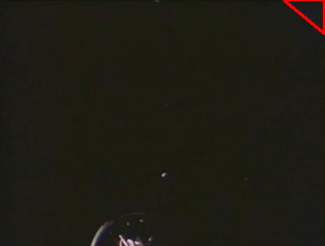 ![]() Another anomaly is that the part I show with a red arrow on these two top views of the LM appears differently on the two views. The view of the left is extracted from a photo of the Apollo 14 mission (AS14-74-10206), and the view of the right is an image of the docking video. On the view of the left, the part I show is obviously the same matter as what is around it. But, on the view of the right, this part appears completely differently, it appears metallic, a bright metal. |