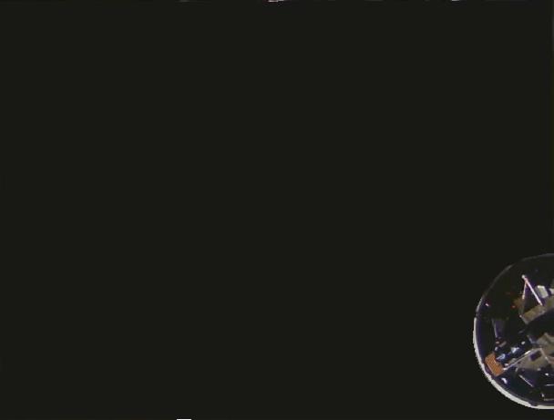 ...And the camera will see the earth this way. At the end of the flipover, the LM will appear near the left top corner of the image. |