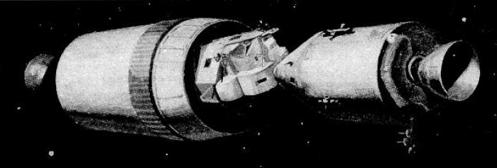 ![]() In the documentation of Apollo, the body of the S-IVB is still visible when the CM docks to the LM, and, on the video, we can't see it at all. It is strange that it appears invisible on the video when it is visible on the illustration. It should be visible, for it receives the light from the CM, so at least a part of it should be visible, it should not be completely invisible. |