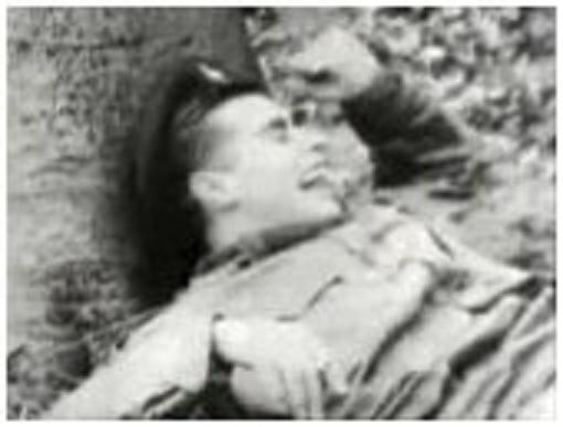 Now, more compromising, look at the astronaut in the basket which is hauled by an helicopter. In the film, he passes quite fast, we don't have the time to well see him, but I have caught the sequence, slowed it down, and I play it in loop so you can well see the problems: - Look at the astronaut's legs; they are abnormally thin, they are obviously not human legs. - Look at his head: there is a camera over him filming him close, and he does no even raise his head to look at the camera; he makes no sign to the camera. - And see: Suddenly he cocks his head on the side in an unnatural way; he is unable to hold his head upright like a human would do. - We see no part of his body; he is keeping his helmet on whereas he now could take it off, for he could freely breathe in earth's atmosphere; he is keeping his golden visor down while he could at least lift it up; but, if his helmet was removed, of his visor lifted up, we could see he does not have a human face. The fake command module was not filled with real astronauts, but with mannequins disguised as astronauts instead, and it is these mannequins which were extracted from the command module and taken to the ship. Spectators, never seeing these fake astronauts close, and never seeing their faces, might believe it were the actual astronauts coming back from the "moon". |