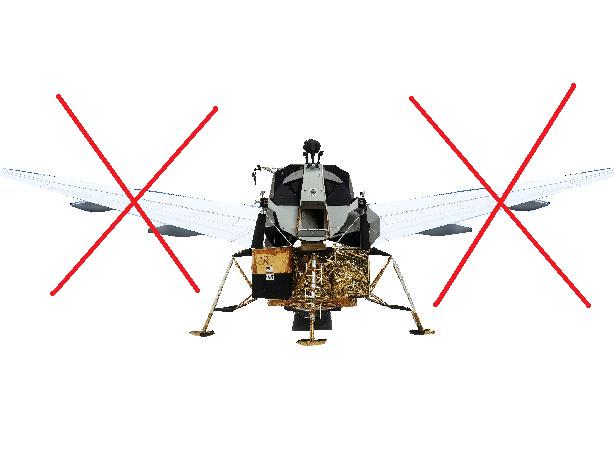 ![]() Mais le module lunaire ne pouvait se comporter comme un avion, car il n'avait pas d'ailes. |