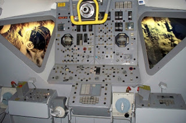 ![]() Et, alors que l'unité DSKY était au centre du pupitre de commande du module lunaire... |