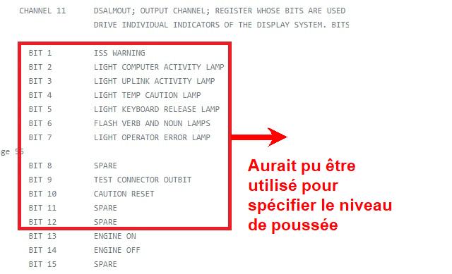 ![]() Mais, après avoir attentivement examiné tous les canaux utilisés par l'AGC, j'ai pu constater qu'il n'y avait pas de canal qui permettait à l'AGC de contrôler la poussée du moteur principal. |