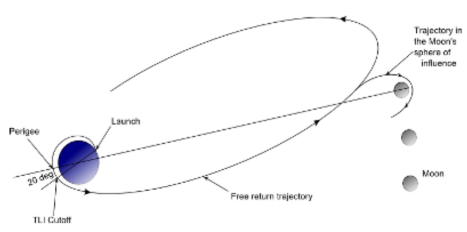 ![]() Ceci est illustré par ce commentaire dans le document: "Transfer energy considerations. In order to arrive in the vicinity of the moon the spacecraft was 'aimed' (targeted) at a position where the moon would be at the time of its arrival as illustrated in figure 5." soit: "Considérations de transfert d'énergie: De manière à arriver dans le voisinage de la lune, le vaisseau spatial a été dirigé vers une position à laquelle la lune serait au temps de son arrivée, comme illustré sur la figure 5". |
