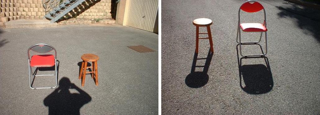 Figure 33: Les ombres de la chaise et du tabouret paraissent par contre bien parallèles lorsqu'elles sont prises latéralement, ou encore de biais.