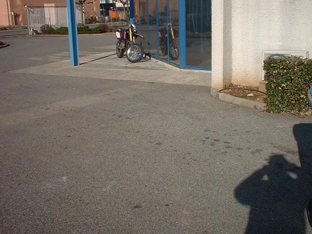 Figure 29: Mon ombre est sur la gauche de la photo, et celle de la poubelle est sur la droite; l'ombre de la poubelle est moins verticale que dans l'exemple précédent, mais encore loin d'être horizontale.