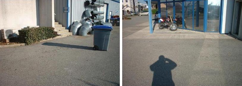 Figure 28: Mon ombre est sur la droite de la photo, et nous voyons également l'ombre de la poubelle sur la droite, laquelle fait un angle léger avec la verticale.