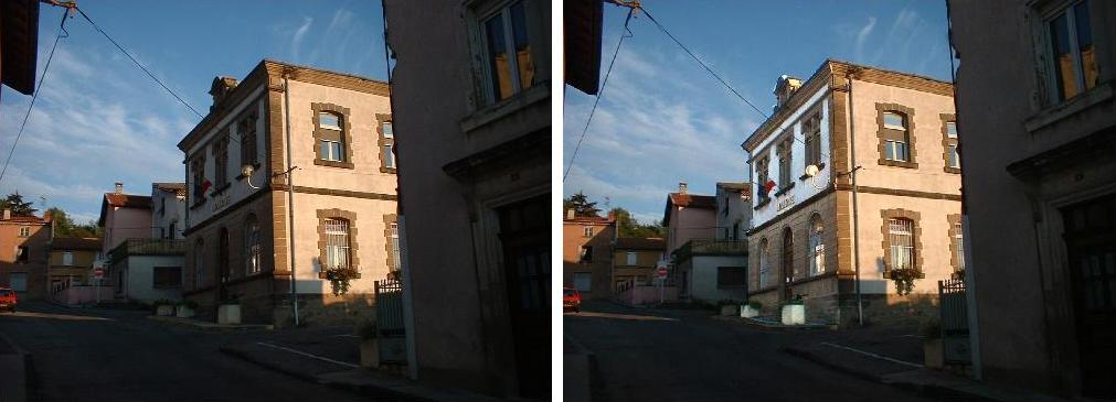 Dans ce cas, je rajoute de la luminosité sur cette partie afin de mieux mettre en évidence ce qu'elle cache; la figure 38 montre un exemple ou j'ai rajouté de la luminosité sur la face assombrie de la mairie afin qu'on puisse mieux la voir.