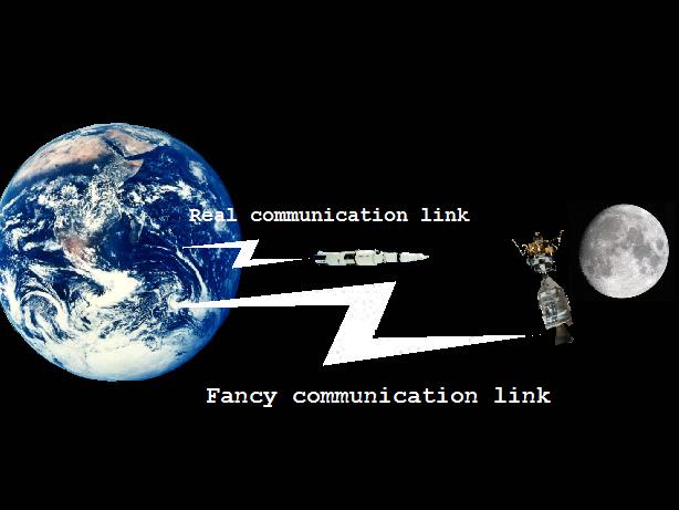 Comme cette photo que je montre avec le CSM vu en oblique, et non frontalement; et pourtant nous ne voyons par le module de service (la partie cylindrique du CSM) sous le module de commande (la partie conique du CSM), elle est totalement invisible, comme si elle avait été enlevée.