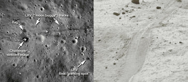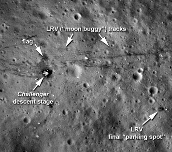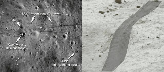 NASA claims that this part of a satellite photo shows the remains of the Apollo 16 lem (descent stage). ![]() |