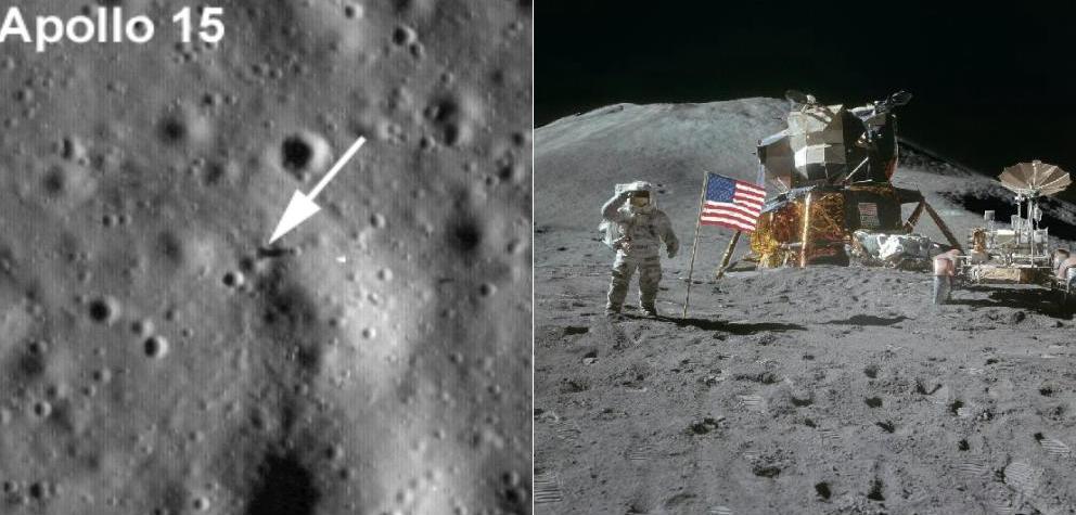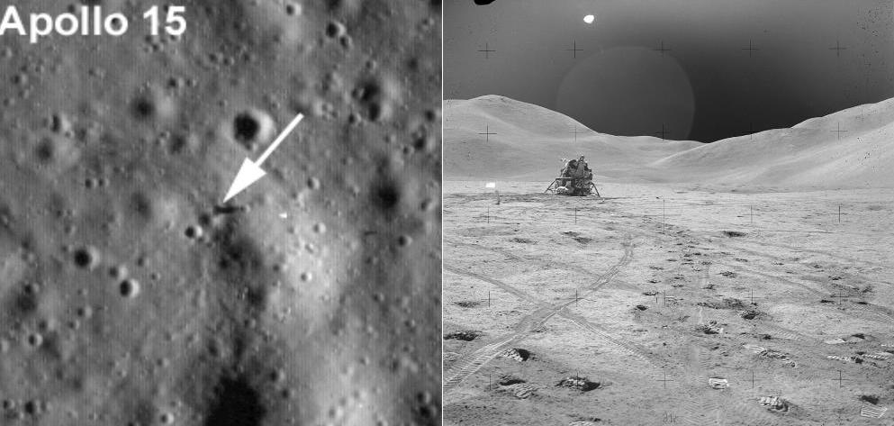NASA claims that this part of a satellite photo shows the remains of the Apollo 15 lem (descent stage). ![]() |