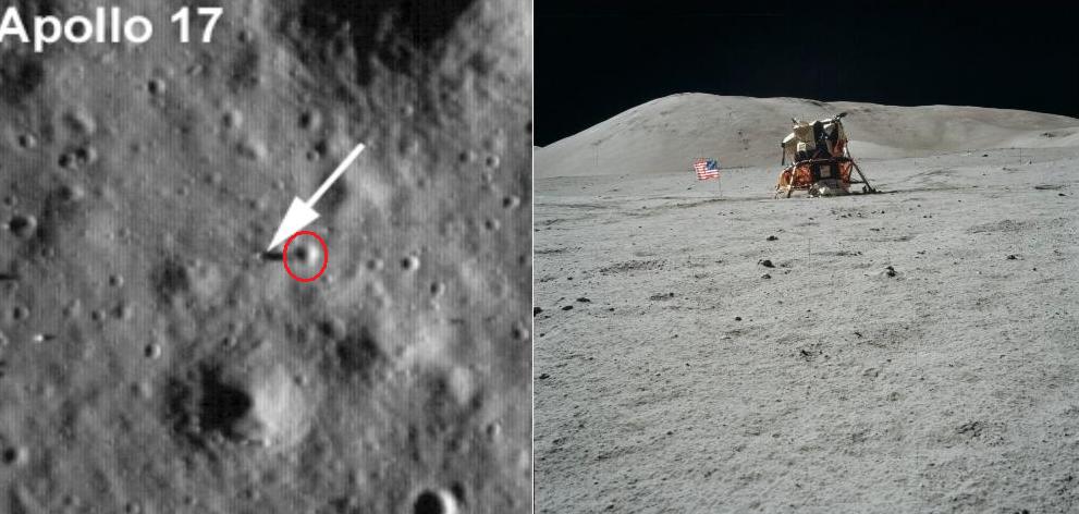 NASA claims that this part of a satellite photo shows the remains of the Apollo 17 lem (descent stage). ![]() |