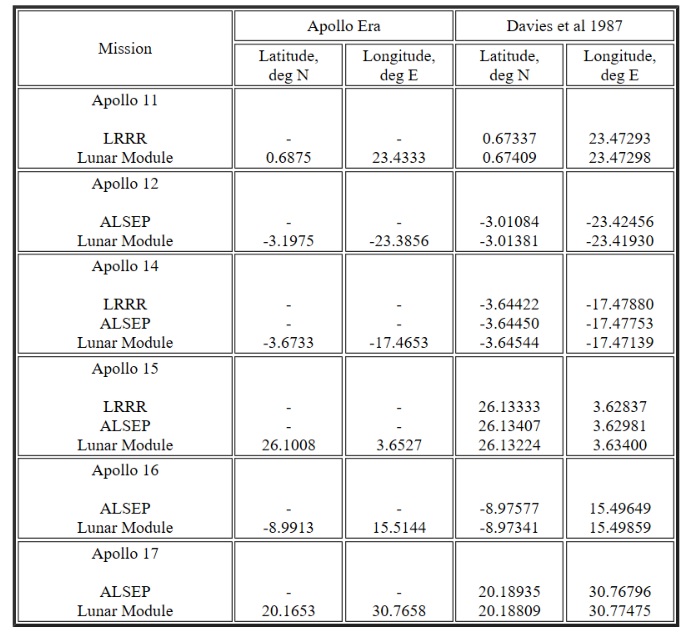 ![]() I am now going to give a new example of incorrect distances on a LRO photo of Apollo 17. This is a LRO photo of the landing site of Apollo 17. ![]() They have indicated a scale on this photo, which allows to measure distances. ![]() I have used the indicated scale to measure the distance between the lunar module and the ALSEP, and also the distance between the lunar module and the lunar rover. On my screen, and at the size that I have displayed the photo, I have measured 84 millimeters for the bar representing 100 meters, 175 millimeters for the distance between the lunar module and the ALSEP, and 123 millimeters for the distance between the lunar module and the lunar rover. This gives, by making a rule of three, a distance of 208 meters between the lunar module and the ALSEP, and a distance of 146 meters between the lunar module and the lunar rover. But the official distance between the lunar module and the ALSEP is 190 meters (this distance is mentioned in the dialog of Apollo 17, at time 118:56:03). ![]() The lunar coordinates of the lunar module and the ALSEP are indicated in the official table of lunar coordinates of the Apollo missions. The lunar coordinates of the lunar module of Apollo 17 were Latitude 20.18809 North, and Longitude 30.77475 East, and the lunar coordinates of the ALSEP were Latitude 20.18935 North and Longitude 30.76796 East. ![]() If we input these coordinates into the the lunar distance calculator (of which I have given the link above), we find a distance of 197 meters between the lunar module and the ALSEP, according to these lunar coordinates. ![]() So we have three distances between the lunar module and the ALSEP, 190 meters for the official distance, 197 meters for the distance calculated from the lunar coordinates, and 208 meters for the distance measured on the LRO photo, and they all are different from each other. ![]() Still better: if we measure the distance between the lunar module and the lunar rover, still using the indicated scale, we find a distance of 146 meters. But the official distance between the lunar module and the lunar rover was 158 meters! ![]() And, if we use the official distance between the lunar module and the lunar rover instead of the indicated scale as a reference, then we find a distance of 225 meters between the lunar module and the ALSEP, still more different from the official distance and the distance calculated from the lunar coordinates! ![]() To finish crucifying this photo, let's concentrate on the close-up of Challenger. First we see a lunar module which is obviously asymmetrical, very far from the regular shape it should have. ![]() Then we can see a footpad shining in the shadow of the lunar module. How is it possible? ![]() And we can't see the fourth footpad which is exposed to the sun. ![]() The footpads we can see are not symetrically disposed around the lunar module. ![]() A last thing: On the photos of the LRO, the rover tracks appear darker than the lunar ground. ![]() Yet, on the photos of the missions, they don't appear darker than the lunar ground, they appear with the same color as the lunar ground. ![]() If they were appearing as dark on the photos of the missions as they appear on the photos of the LRO, they would then appear as what I show on the right view. ![]() And, if the rover tracks were appearing with the same color as the lunar ground on the photos of the LRO, as they should, they would appear invisible. ![]() So, what credibility may have this LRO photo of the landing site of Apollo 17? ![]() Now, someone has shown me a table with new more recent coordinates of the landing sites, which would have been obtained with the LRO. ![]() So, I have calculated a new distance between the descent stage and the ALSEP of Apollo 17 by using the coordinates of this new table. And I have found exactly the same distance as I had found with the previous table of NASA. So the demonstration I have made with the LRO photo of Apollo 17 remains unchanged. ![]() I have also calculated a new distance between the descent stage and the ALSEP of Apollo 15 by using the coordinates of this new table. And this time I have found a distance very different from the distance I had found with the previous table of NASA (105 meters instead of 127 meters). How could it be so different? Would the artefacts of Apollo 15 have moved between 1987 and 2017? However this new distance remains very different from the distances between the descent stage and the ALSEP I have measured on the photos of the LRO of Apollo 15, by using the scale indicated on them (90 and 71 meters). So the anomalies I have spotted on the demonstration of the LRO photos of Apollo 15 remain valid. |