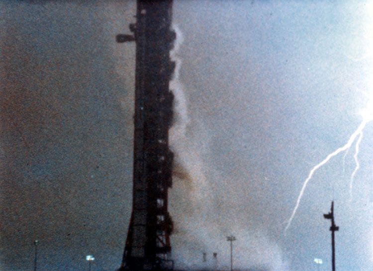 ![]() In Apollo 12, a lightning struck the Saturn rocket. The following effects are reported for the command module in the mission report: - Instrumentation loss: The only permanent effect on the spacecraft was the loss of nine measurements at the first discharge. - Fuel cell disconnect.- At the time of the first lightning discharge, the fuel cells were automatically removed from the spacecraft buses with the resultant alarms normally associated with total fuel cell disconnection; they were restored later. - Loss of inertial platform reference, which led to a degraded state of the inertial platform (which would have been solved for Apollo 13). It means that the command module was in a degraded state. In these conditions, it was not safe to send it toward the moon... |