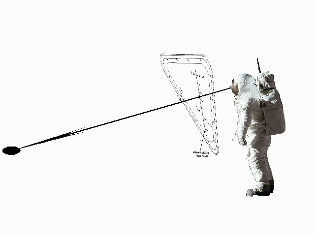 ![]() Now, if we ignore these problems, what is the next problem? The second astronaut has indicated the mark of the computer, but the first astronaut sees that the landing spot is on a mark which is lower than the computer's mark. So the first astronaut makes a succession of actions on the hand-controller corresponding to the difference. |