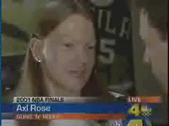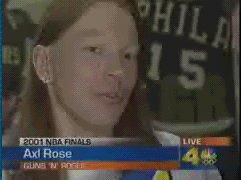 Junio 2001 - Axl fue a un partido de L.A Lakers. La entrevista que dió se puede leer (en castellano y en ingles) en la parte de Noticias. Si queres el video de la entrevista pedímelo por mail o ICQ. (ocupa 2 Megas)