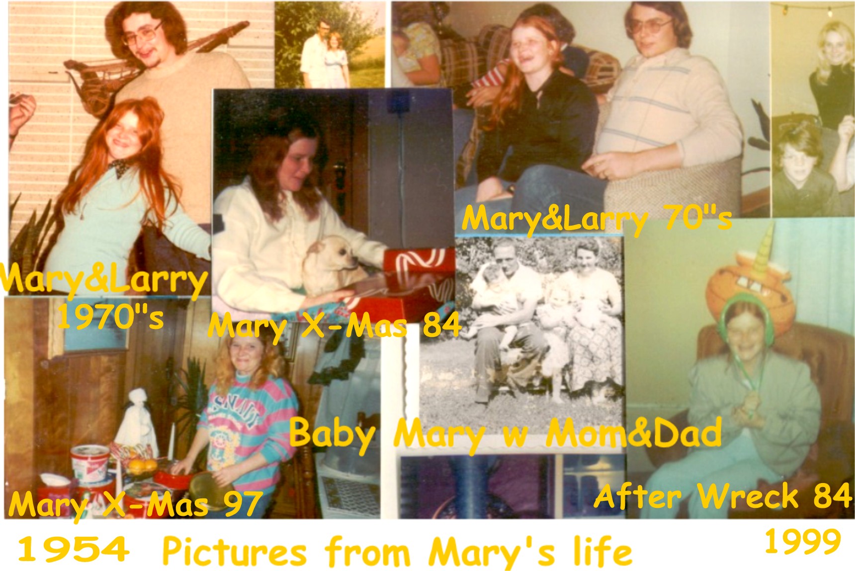 These are old pictures of Mary. Things from her past. Larry was her husband in 1974 till 1979.He was 6"5' and she was only 4"10'. That was so cute. I think this was her true love but they divorced in 1979. Mary with first husband Eddie that lasted only a year till she met Larry. Mary always laughed and was fun to be around. She was always called Peanut, because she was so small and nutty. I know she keep's God smiling all the time. I love her and miss her so much. to see rest of Picture Scroll-->