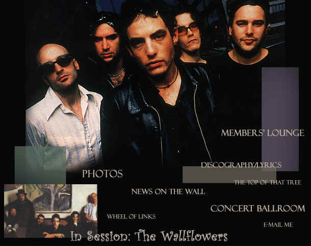 Welcome to In Session: The Wallflowers! July 26, 2000 Yeap, this page is still underconstruction, mainly cause of the renovations that I'm going to make to each one of these pages on this site. I'm kicking back into updating this site once again (cause of their new release, there will be some actual stuff happening now). You can start off by checking out thew for The Wallflowers' upcoming release! In the mean time, check out my friend, Annie's website at sidewalk annie. |
