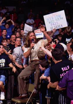 The Commish enjoys an adult beverage after playing ref on RAW!