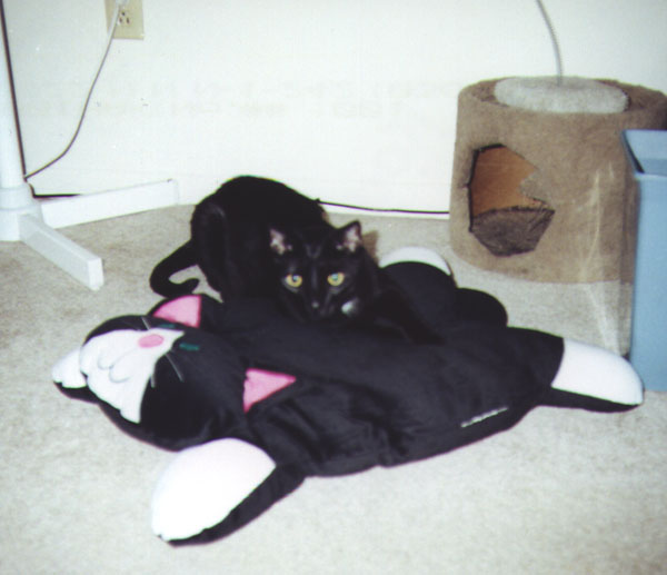 Midnight Loves His Kitty Pillow