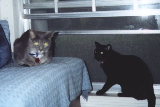 Here are Midnight and Pepper and our two new kids, Chester and Shadow.